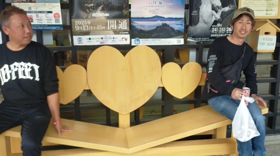 両サイドに座ると内側に勝手に引き寄せられるハートのラブラブチェアーがありました