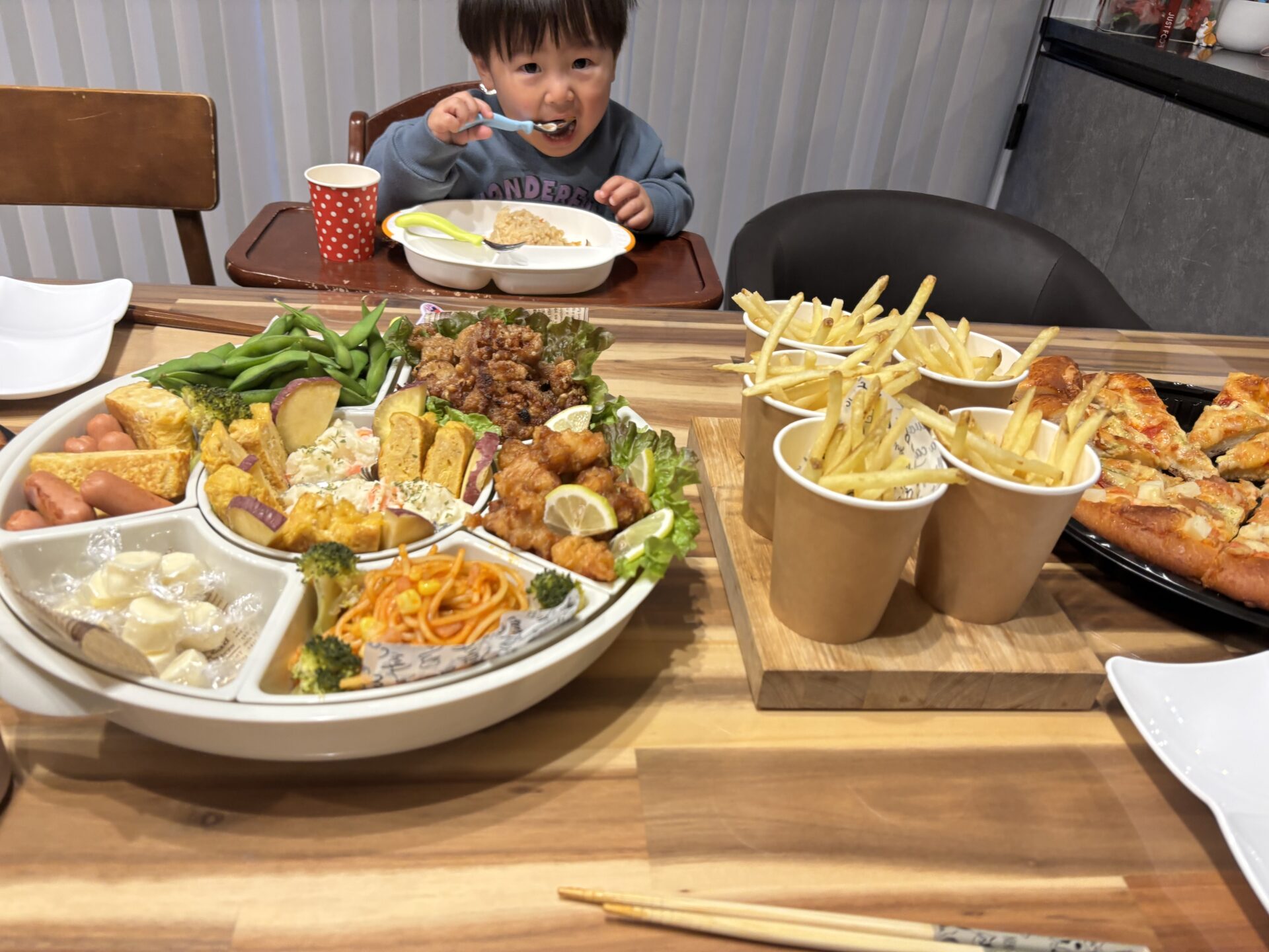 誕生会は、子供の好きなメニューばかりで🍟🍖🍕