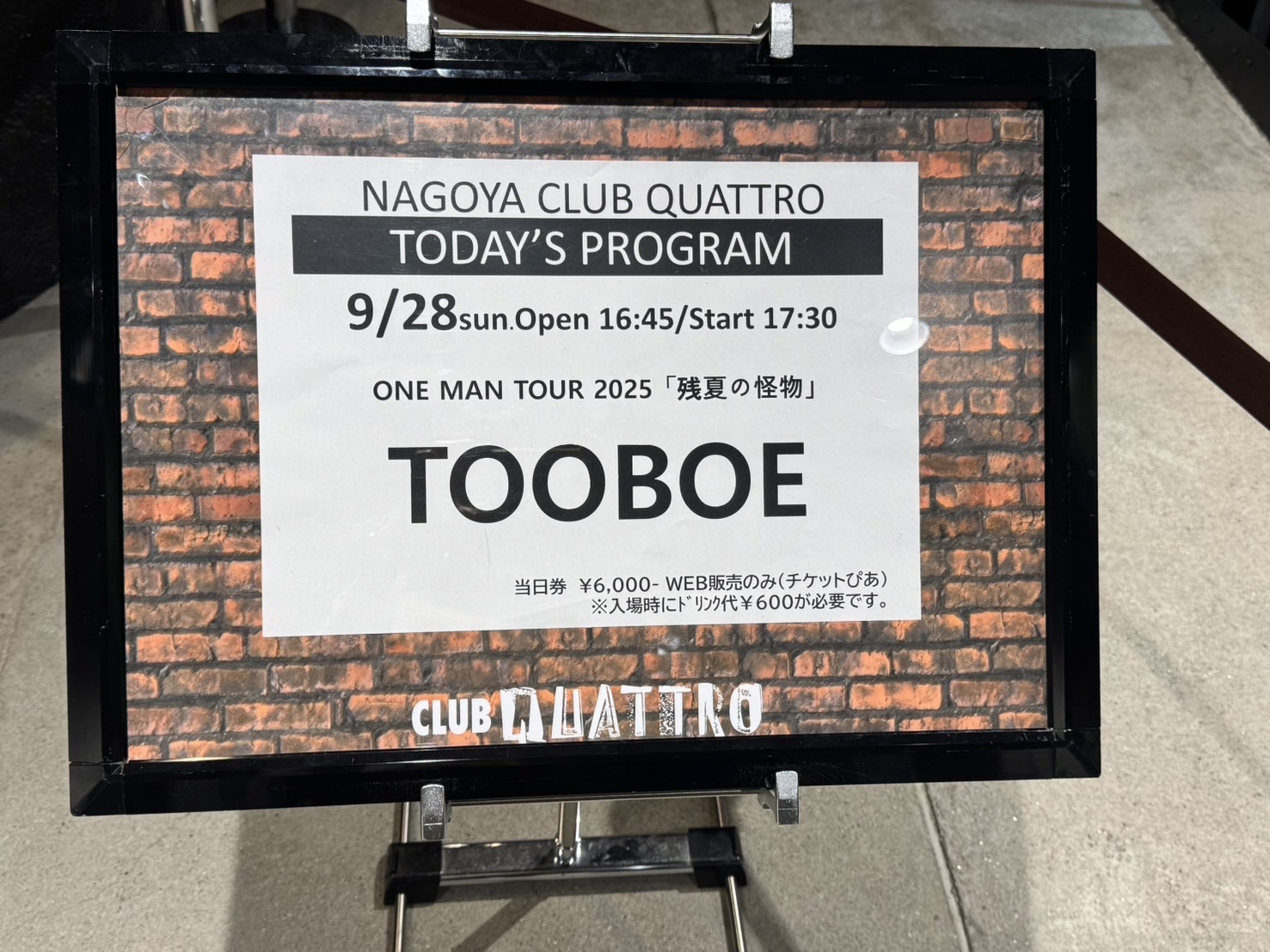 今回は『Tooboe』で読み方が(とおぼえ)というバンドのライブでした。