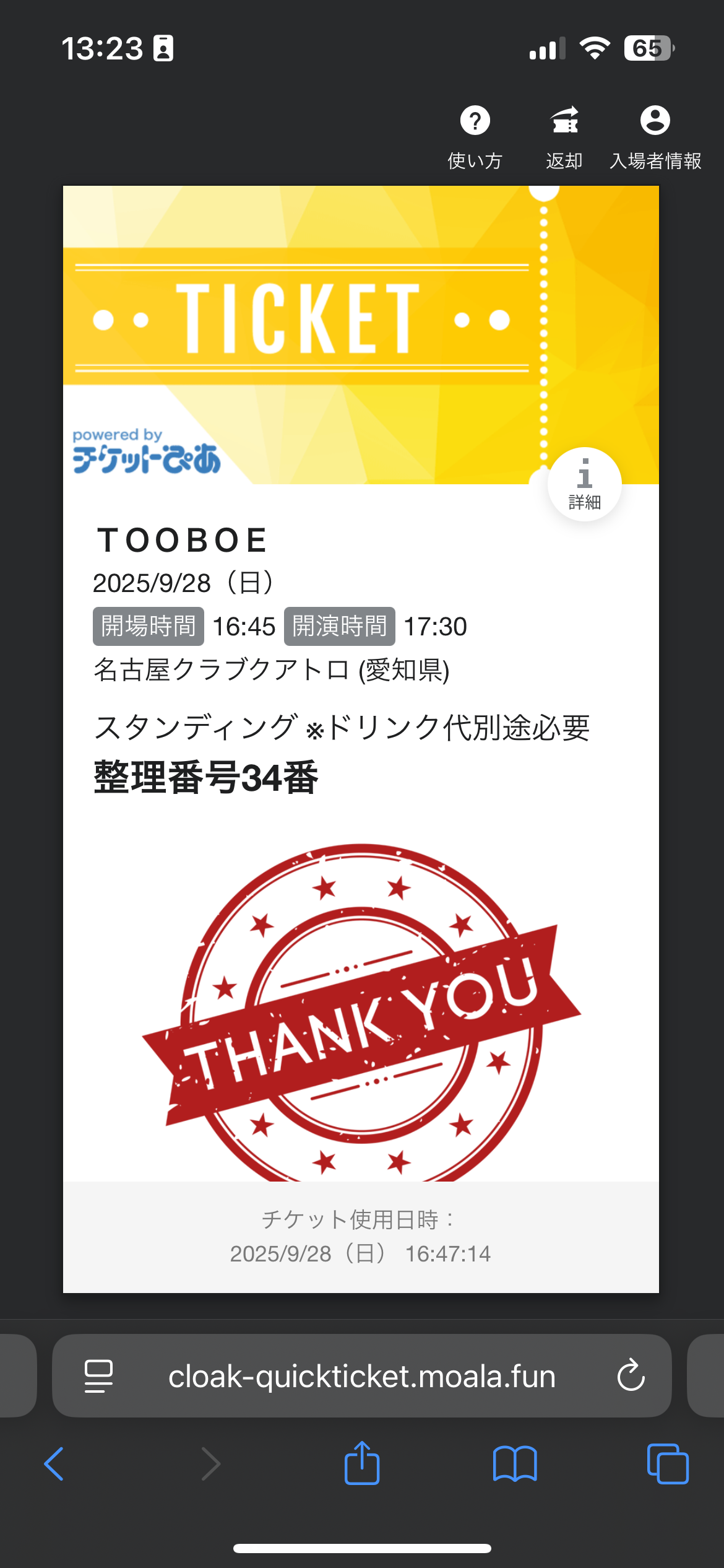 整理番号で1番から会場に入るのですが今回は34番で前から3列目の中央だったのでアーティストがすぐ目の前だったのがとても嬉しかったです。